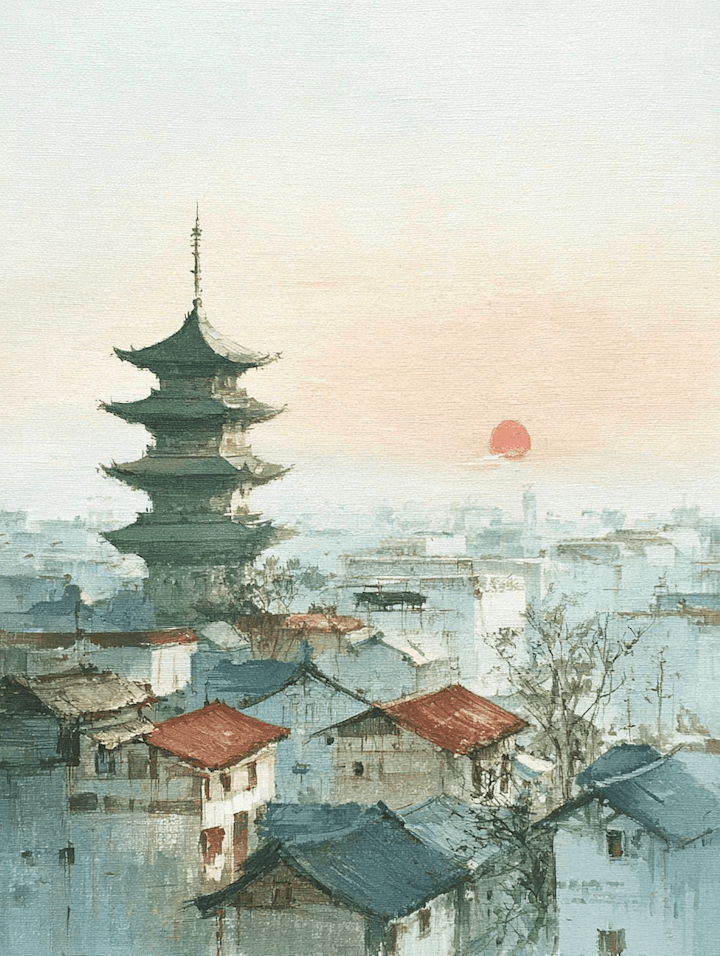 The tiered eaves of the ancient pagoda