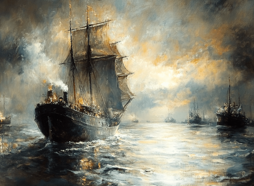 And a grey mist on the sea’s face, and a grey dawn breaking.